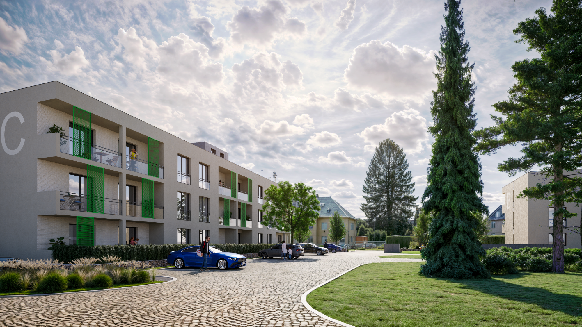Družstevní byty ve Dvoře Králové postavíme ve stylu moderního funkcionalismu s dispozicí 3+1. Ke každému bytu náleží i technická místnost na stejném patře, lodžie či předzahrádka a 2 parkovací stání přímo u domu. Vjezd do rezidenční zóny bude chráněn bezpečnostní závorou. Rezidenční zóna je lemována nízkým gabionovým plotem. Vybavení areálu počítá s užitnými travnatými plochami a nabíjecími stanicemi pro elektromobily. O celý areál pečuje OSBD Liberec.